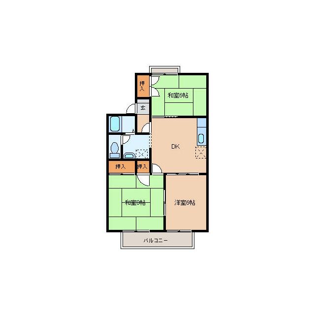 | 間取り | 3DK(DK6 洋6 和8 和6) | 主要採光面 | 南 |